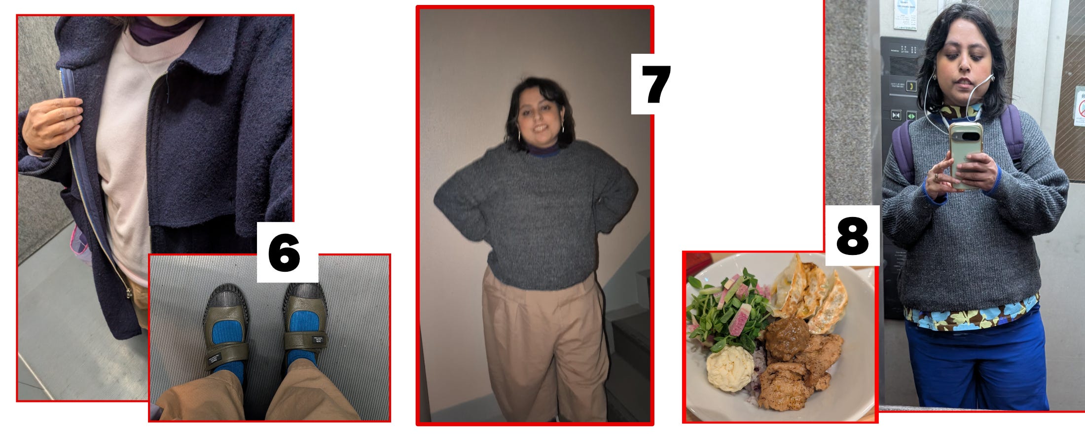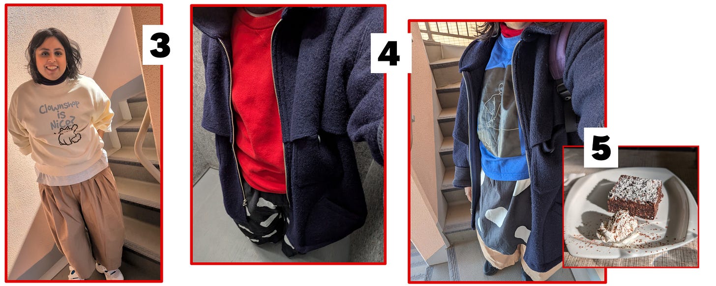 Okay, this was a long and stressful day. Started with the psych clinic, then a dentist appointment, then drama trying to reserve train tickets for a trip next month (honestly, you need the full context, but long story short, the station reps were MEAN), then I missed a movie and dinner plans so I went to a vegan place I knew of and scarfed down this gyoza and soy meat bowl after 10 hours without food. Then I met with a friend for a catch-up. Luckily, the outfit was comfortable and reliable. The nylon blue pants with the Variety Hour turtleneck and thrifted grey jumper.